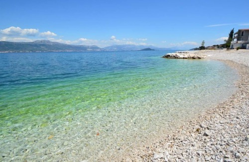 Arbanija (Čiovo) 4 km from Trogir: Apartment block "Šarić". 100 m from the centre of Arbanija, in a sunny position, 30 m from the sea, 30 m from the beach. In the house: internet access. Public parking. Shop, restaurant 50 m, bus stop 18 m, pebble beach 30 m. Tennis 7 km. Please note: airfield 10 km from the property.