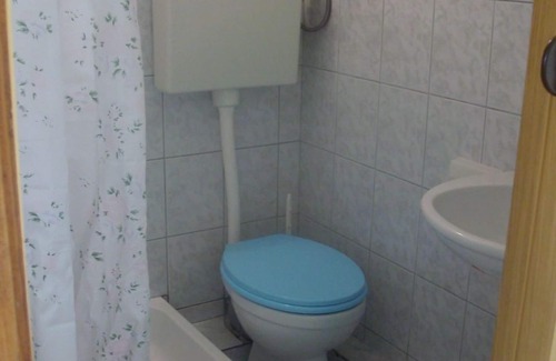 BATHROOM: Bathroom size is 5 m2. Equipment in the bathroom: shower, toilet, tiles, bath towels.