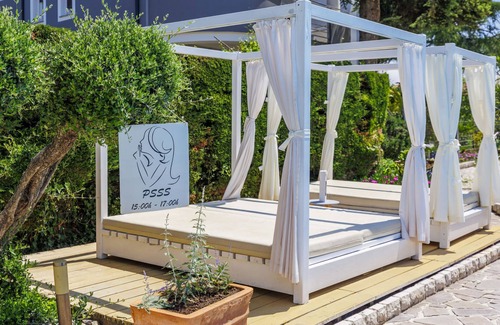 Apartment house "Nika". In the district of Punta 2 km from the centre of Umag, in a sunny position, 300 m from the sea, 300 m from the beach. For shared use: property 1'500 m2 (fenced), well-kept garden, swimming pool (8 x 4 m, depth 135 cm, seasonal availability: 25.Apr. - 19.Sep.). Outdoor shower, hot tub, barbecue. In the house: internet access, bicycles available (extra). Available: boat (extra). Parking. E-charging station. Shop, restaurant 500 m, bus stop 1.9 km, pebble beach 300 m. Tennis 200 m, children's playground 20 m. For shared use: hot tub available from 15.05. - 15.09. Video surveillance of the driveway and parking.