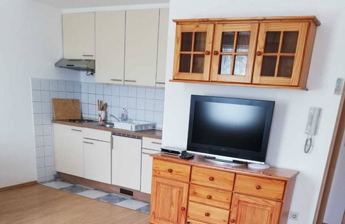 Dinette, tv and access to the balcony (roofed, garden furniture)