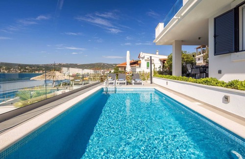 Beachfront Villa Mila M with Pool is a comfortable and modern vacation rental in Vinisce, a peaceful village in the Trogir area of Croatia. Perfect for up to 9 guests, this villa is located just 10 meters from the sea, offering stunning views and easy beach access.