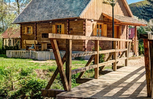 Villa Plitvice I is a charming two-story chalet nestled in the hamlet of Vrelo Koreničko, just 18 km from the renowned Plitvice Lakes National Park. Enjoy a peaceful and sunny countryside setting with a private barbecue area and a shared 900 m2 property. The vacation rental boasts Internet Wi-Fi access, ample parking for up to three cars, and a convenient location near shops (4 km) and restaurants (1 km). Relax in the outdoor hot tub (for an additional fee) after exploring the breathtaking Plitvice Lakes, easily accessible from this idyllic retreat.