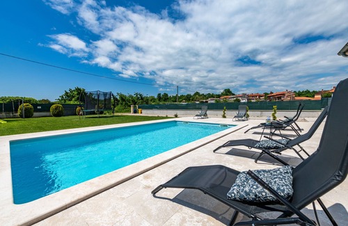 In the heart of Istria, in a quiet and peaceful village Kinkeli you will find the charming Villa Mia. The garden is spacious, with 1400 square meters, large private pool, sun loungers, parasols, large outdoor table with charcoal grill and plenty of space for children.