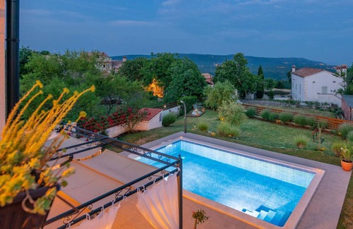 Welcome to Barban-Puntera and this beautifully designed and modern holiday home. Here you can relax with your extended family and your four-legged friend and unwind in the spacious bedrooms, with en-suite bathrooms and balcony or terrace access, and start the new day relaxed in the morning. The beautiful house is cosily furnished in a country style and a beautifully landscaped garden with a harmonious outdoor pool rounds off the offer for you. Enjoy the view of nature and the bay and leave your everyday worries behind.