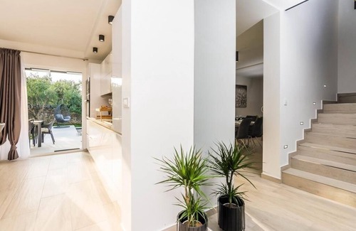 The villa in Ždrelac is located on the island of Pašman. It is located directly on the sea, only 10 m away. Modern decor, consisting of two residential units for a maximum of 8 people. Equipped with all necessary equipment. The property has an 8x4 meter pool. Outside grill with seating. There is a washing machine and dryer in a separate room. The villa has 3 bedrooms each with its own bathroom, 2 separate toilets and 2 kitchens. There are lovely spacious terraces with sea views. 4 secure parking spaces are available.