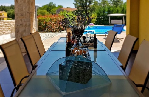 Holiday house Zminj for 1 - 14 persons with 6 bedrooms - Holiday home is located in Muzini. Holiday house Zminj for 1 - 14 persons with 6 bedrooms - Holiday home provides accommodation, featuring Laundry, Air Conditioner, Private Pool, among other amenities. This House features Laundry, Air Conditioner, Private Pool, to make your stay a comfortable one.