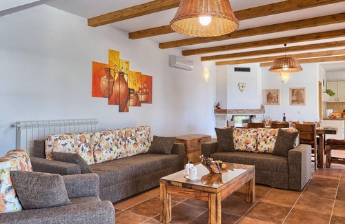 With its peaceful, rural setting, yet not far from the emerald blue sea and hidden natural beaches of the Adriatic, Villa Loverka is a beautiful villa set in spacious grounds that invites guests to enjoy both indoor and outdoor living. Light-filled, spacious and comfortably furnished, the villa combines modern amenities such as air conditioning, WiFi, a fully equipped kitchen and modern en-suite bathrooms, while retaining the rustic charm of a country house with traditional beamed ceilings, solid wood furniture and a cosy fireplace that creates a warm, comfortable atmosphere. Two bedrooms are spread across the upper floor, while the third opens directly onto the inviting private pool area, a wonderful place to relax and unwind. The pretty, covered veranda with the authentic built-in barbecue and a large dining table is an attractive refuge from the summer heat, as well as the perfect place for enjoyable al fresco dining. Another lounge area is located on the upper terrace with arguably the best views. With the magnificent view over the idyllic countryside with the emerald blue sea as a backdrop, who could resist choosing this villa as the perfect Istrian retreat.