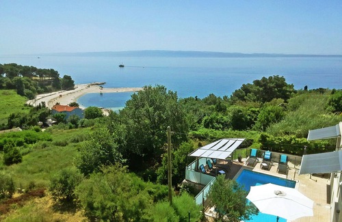 It offers private parking place, heated pool, few different lounge parts, fully equiped kitchen, 2 bathrooms, 2 rooms, barbecue ,table tennis,billiard table.