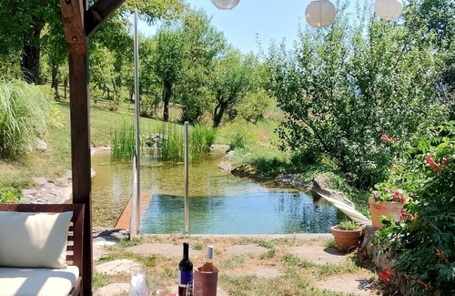 Our house is located on the southern slope with a breathtaking view of the surrounding hills, pine forests, fields and small villages in the distance.