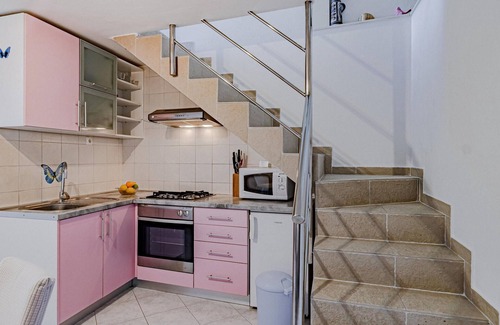 This two-storey apartment is located in the center of the picturesque fishing village Racisce and near the pebble beach. The kitchen, dining room and bathroom can be found on the ground floor. The internal staircase leads to the upper floor to the bedroom with terrace, from which a beautiful view of the Adriatic extends. If you love peace and quiet and want to spend your vacation far from mass tourism, this is the right place for you. Nature lovers can look forward to walks through olive groves and vineyards, while sun worshippers, west of Racisce, will be delighted by the bays with pebble beach Vaja and Samograd.